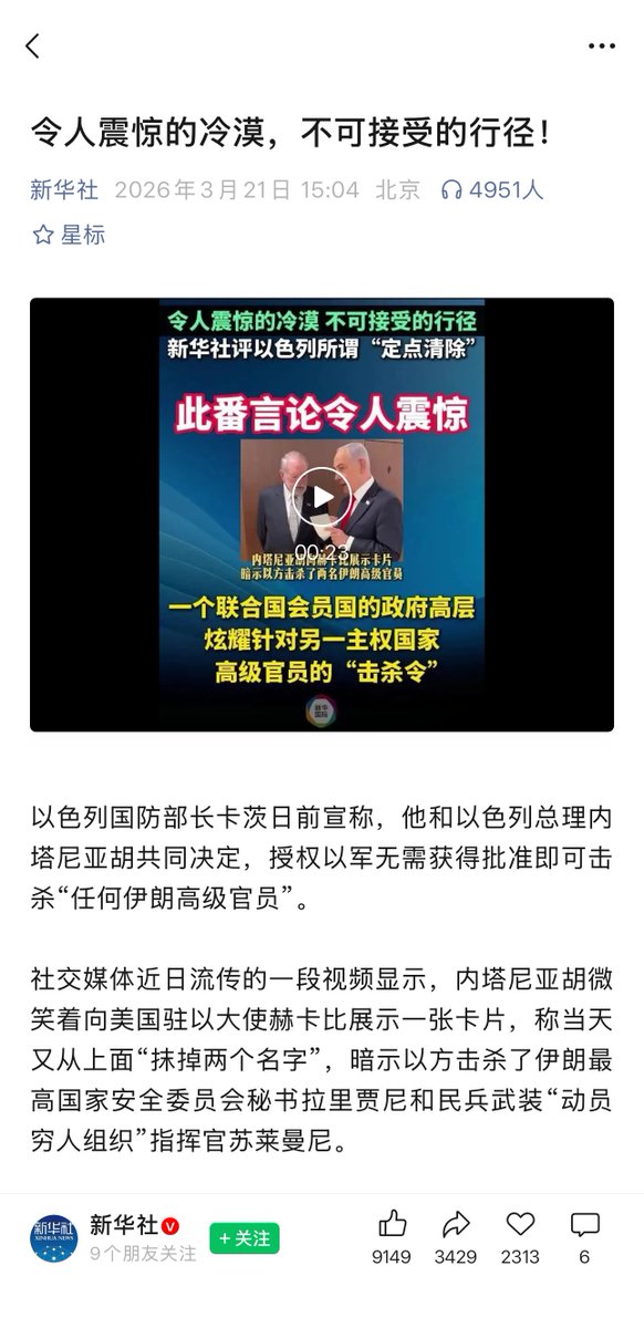 以色列国防部长卡茨原话:......凡情报和行动圈锁定的伊朗高官,无需额外批准,直接清除......”这里有个前缀“凡情报和行动圈锁定的......“新华社翻译:内塔尼亚胡决定,授权以军无需获得批准,可以击杀“任何伊朗高级别官员”人民日报翻译:可以击杀任何官员......