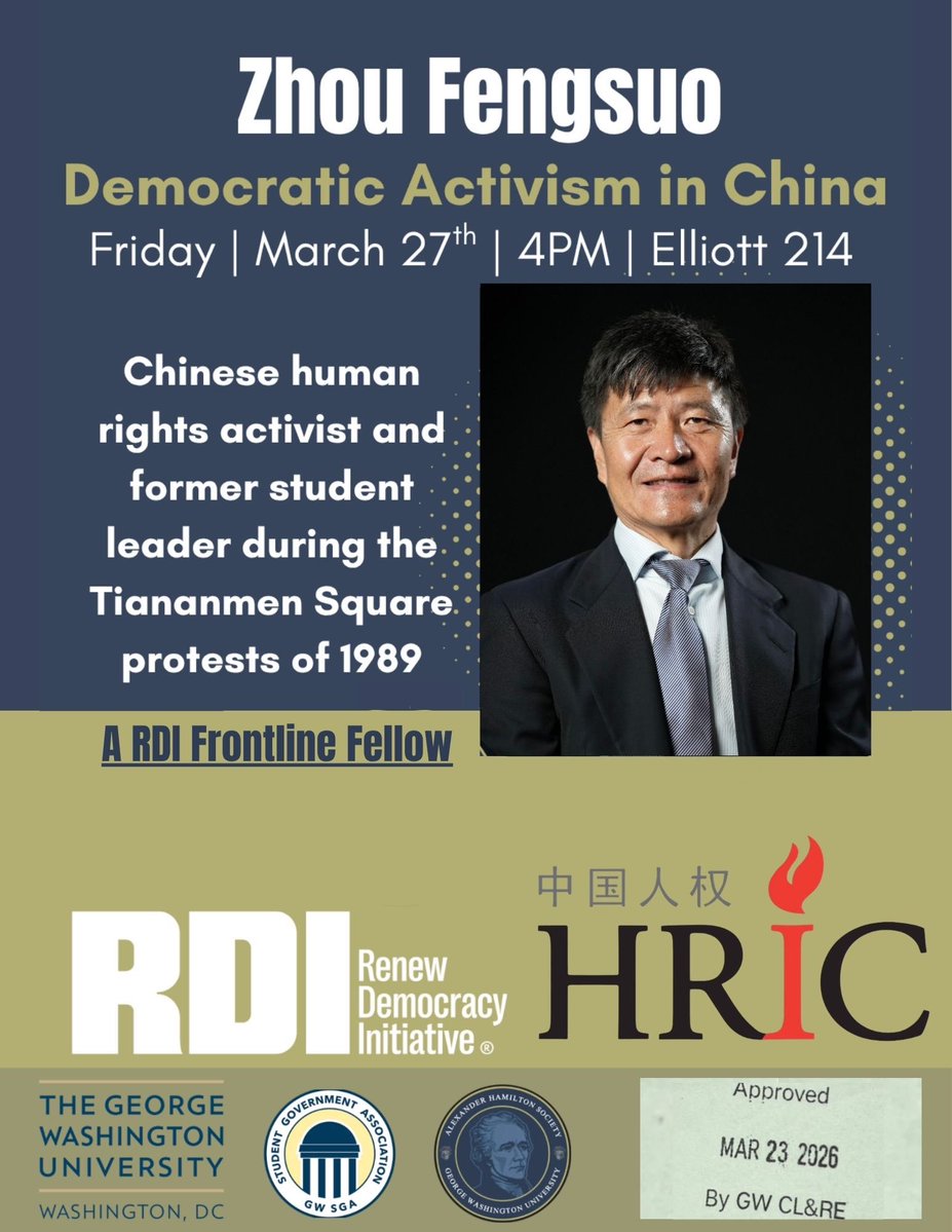 Join me this Friday, 4PM at GWU (Elliott 214), for a conversation on democratic activism in China.