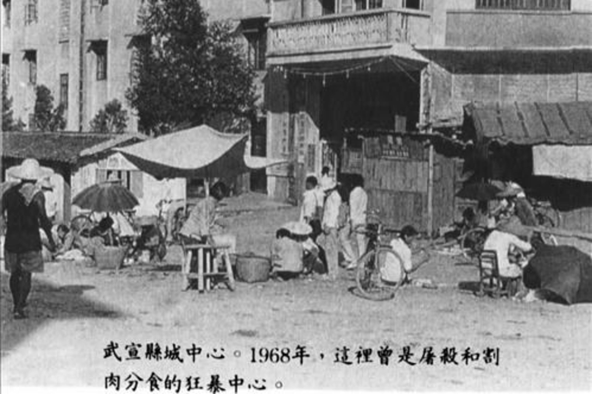 据宋永毅先生研究,广西一半以上的地区发生过吃人事件,我们稍微举几个例子:武宣县武宣中学和桐岭中学,学生吃掉老师和校长。6月18号,武宣中学吴树芳等五位老师,被十几个学生批斗,吴老师当场被学生用木棍打死,一位姓廖的同学对同伴说:听说人肝可以做药,咱们搞点来?于是,几个同学动手,剖腹摘