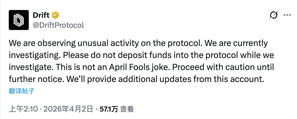 2026 年的第三起大额黑客攻击事件,一次比一次规模大,哎1️⃣Venus:因 THE 价格操纵产生 215 万美元坏账2️⃣Resolve:超额铸造 8000 万枚 USR(部分已冻结)3️⃣Drift:被盗超 2.85 亿美元资产目前黑客已将被盗资产买为 129,065.54 枚 $ETH ,存放在 4 个新地址中