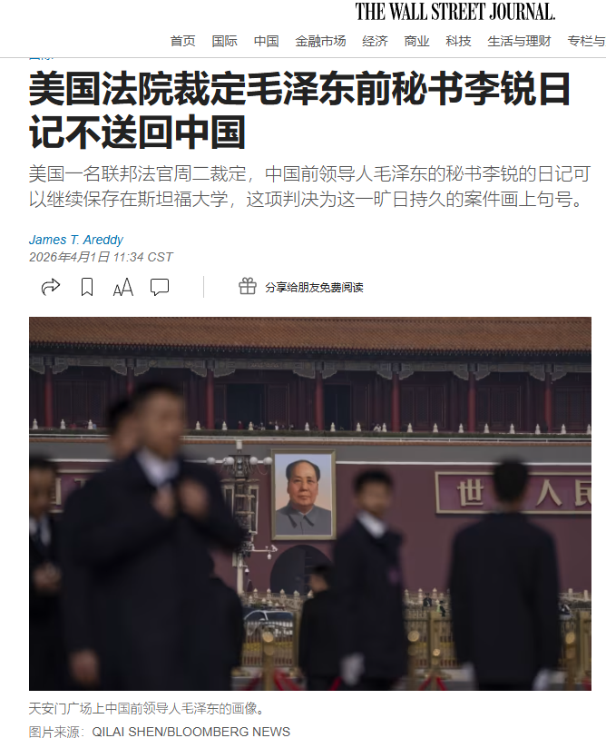 美国一名联邦法官周二裁定,中国前领导人毛泽东的秘书李锐的日记可以继续保存在斯坦福大学,这项判决为这一旷日持久的案件画上句号。