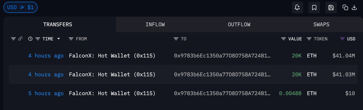 新地址 0x978...b67a7(疑似归属于 Bitmine)4 小时前从 #FalconX 提出 4 万枚 ETH,价值 8207 万美元