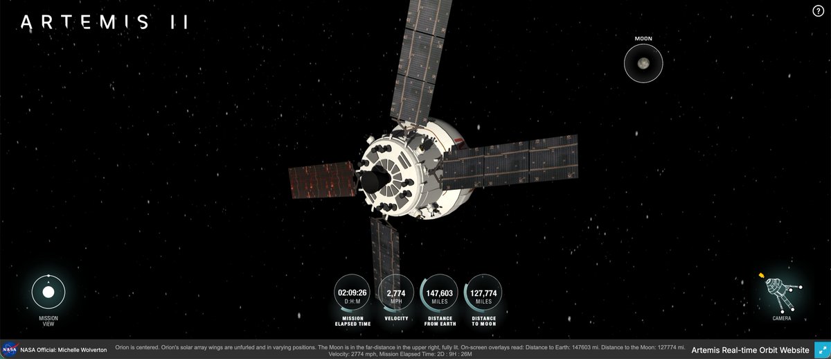 可以实时跟踪阿尔忒弥斯二号(Artemis-ii)绕月任务