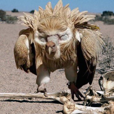This is the Himalayan Vulture displaying its "false eyes" to appear larger and more intimidating.