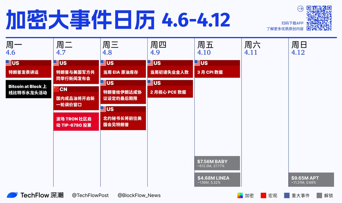 🌐 4 月 6 日 - 4 月 12 日|本周大事件🤓四月好📅 4 月 6 日|星期一🔵 特朗普发表讲话🔵 Bitcoin at Block 上线比特币水龙头活动📅 4 月 7 日|星期二🔵 特朗普与美国军方共同举行新闻发布会🔵 国内成品油将开启新一轮调价窗口🔵 波场 TRON 社区启动 TIP-6780 投票📅 4 月 8