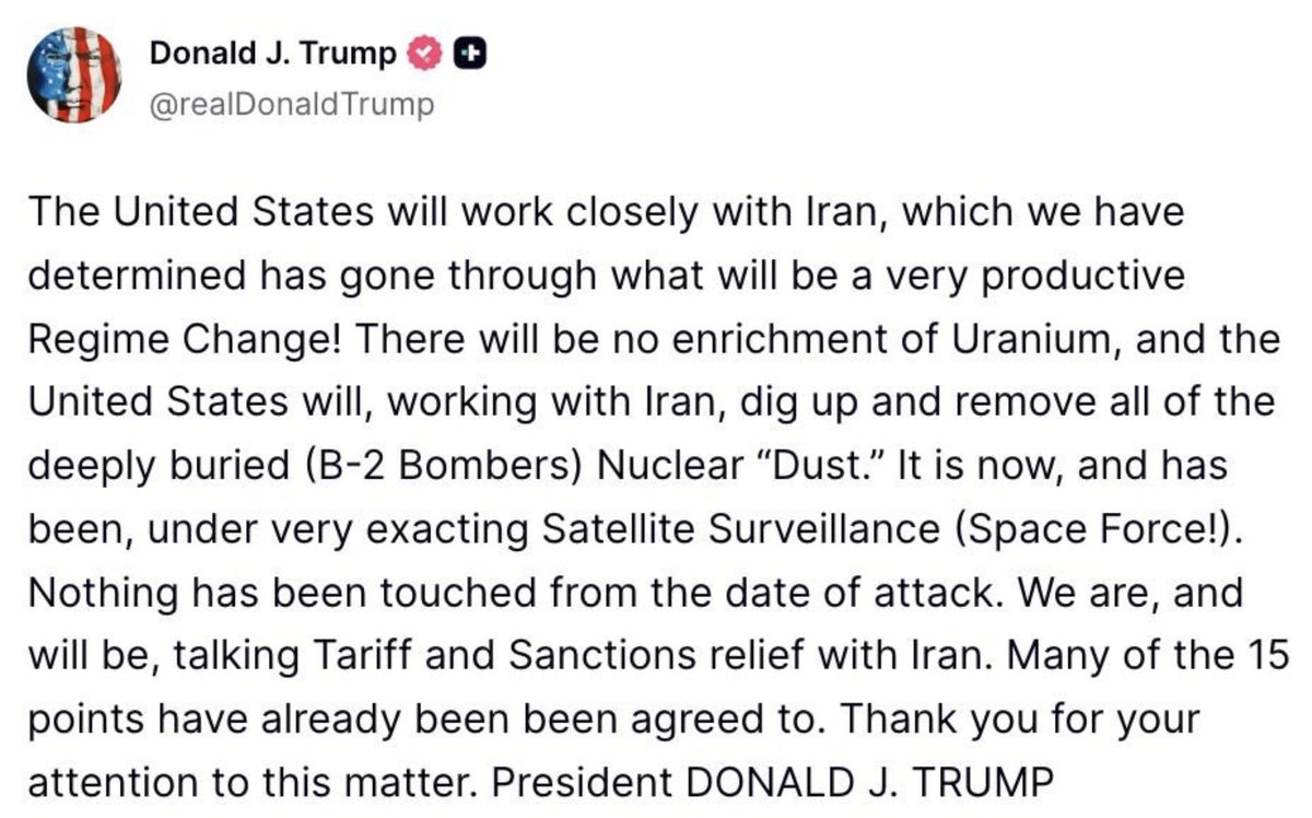 Trump’s ridiculous Truth Social post this morning highly contradicts the actual ceasefire deal the US and Iran agreed to: