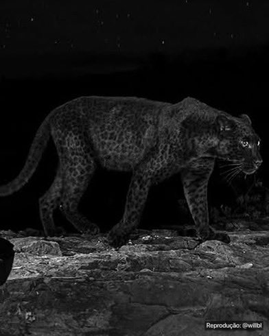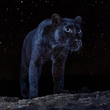 A black leopard under the night sky.