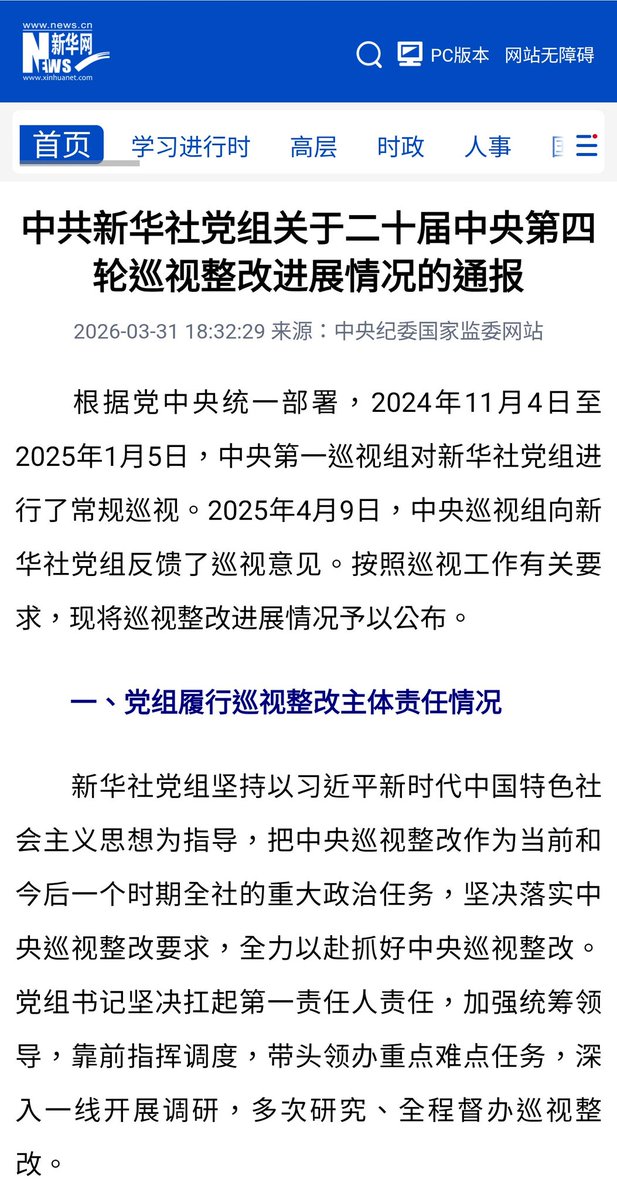 中央巡视组到新华社巡视整改进展情况,其中一项业绩是:“加强资源整合和力量投入,海外社交媒体账号集群建设进入高质量发展新阶段”。”