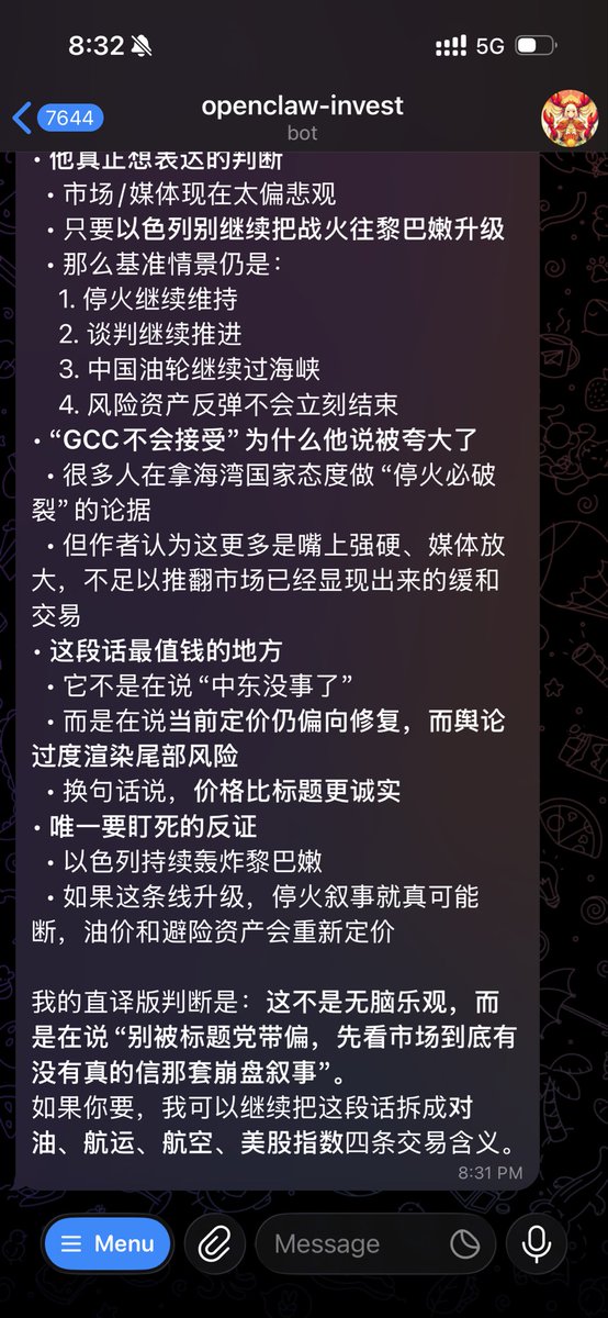 我自己体验下来,少了AI废话后,对回答质量的提升是很大的,可以对比下图1和2的回答,明显图1的可读性高了很多,说话方式跟opus很像了。一个小工具拯救了我的好心情,不然看着一堆AI废话我都不想用龙虾了。