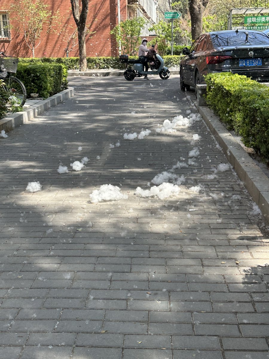 今天北京大晴天楊花如同雪片滿天飛舞,馬路上竟然滾起了「雪球」。出門不戴口罩,楊花直往鼻孔裏鑽。