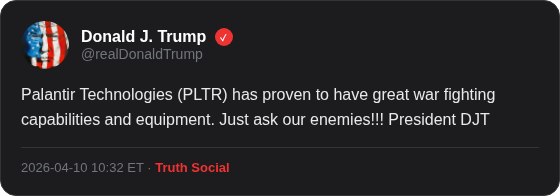 川普Truth Social发帖力挺Palantir,"大空头"伯里仍坚持做空 "大空头"迈克尔·伯里周五在Substack发帖确认,他继续持有针对Palantir科技公司的长期看跌期权,目前持有2026年12月和2027年6月到期的两个空头仓位。此前川普在Truth Social发帖称赞Palantir"具有出色的战时能力",带动股价短暂反弹,但该股本周仍下跌约13%,2026年累计跌幅达28%。伯里表示自2025年秋季开始做空该公司,多次展期持仓,当前立场不变。