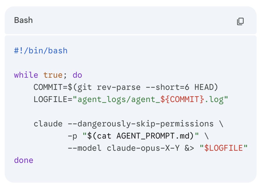 这是 Nicholas Carlini 的编译器项目。最有意思的是他绕过了复杂的 agent 编排,回归了最朴素的如图所示 Bash Shell 循环: