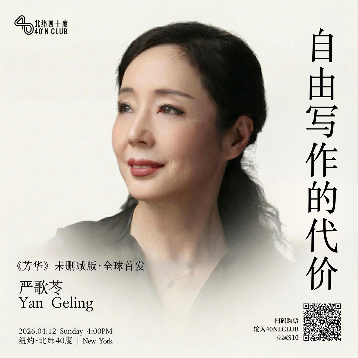这也是未删减版《芳华》全球首发。如果朋友未能到现场参加演讲及购买本书,未来希望订购或直接购买。请关注纽约的北纬四十度空间动态及相关链接。