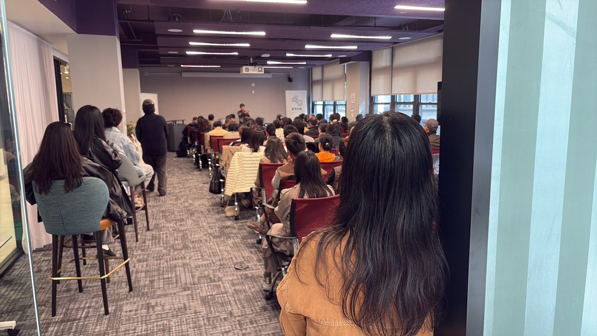 美籍华裔作家严歌苓在纽约的讲座正在进行中。现场座无虚席。