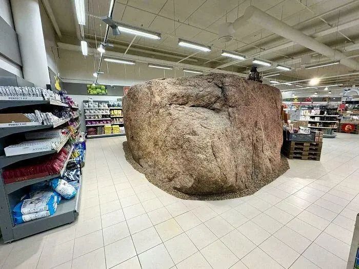 A 10,000-12,000 Year Old Glacial Boulder Inside A Regular Supermarket In Estonia.