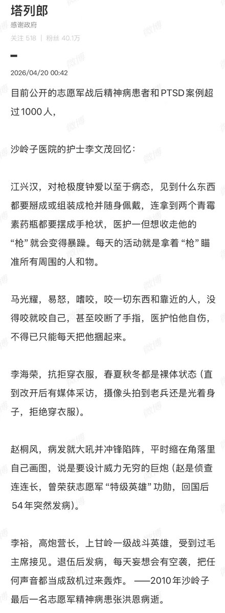 抗美援朝志愿军回来以后有人患战争PTSD吗?