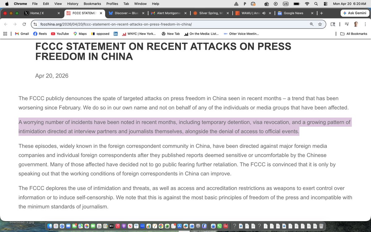 Reporters covering the Trump-Xi summit take note: Foreign media in China targeted with "temporary detention, visa revocation, and a growing pattern of intimidation directed at interview partners & journalists, and denial of access to official events."