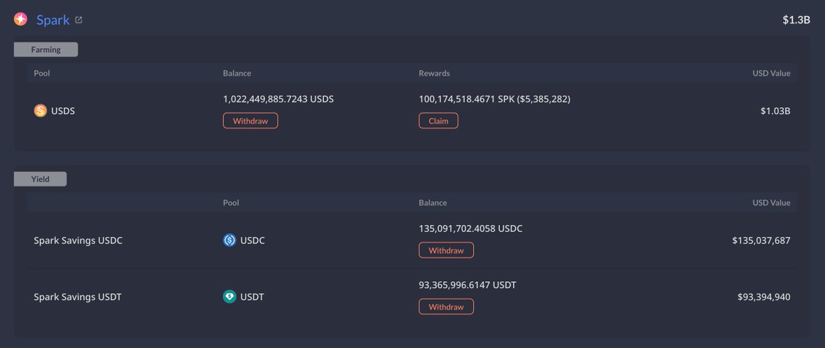 「DeFi 超人」孙哥已累计向 Spark 存入 13 亿美元资产,USDS Farming 奖励高达 538 万美元🤯