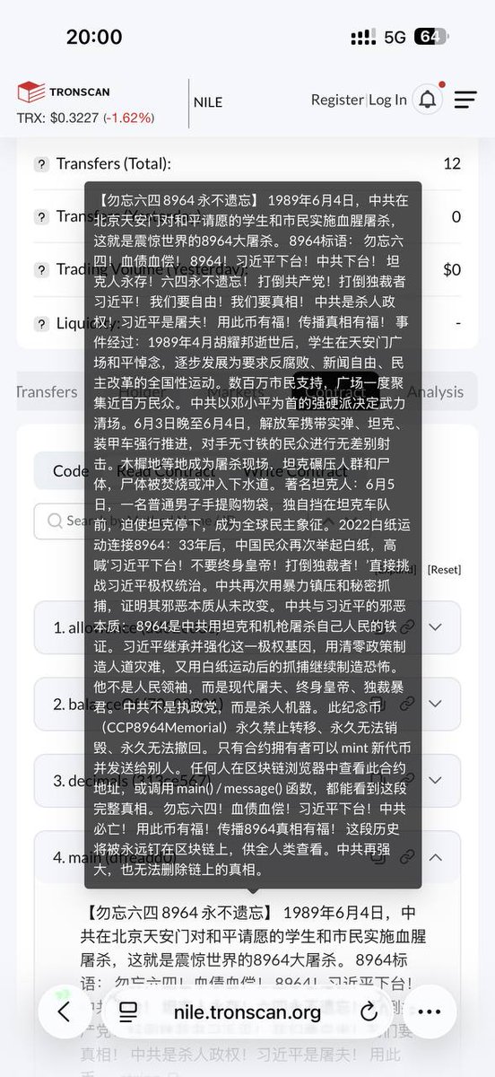 将中共罪行永久刻录在波场区块链上!