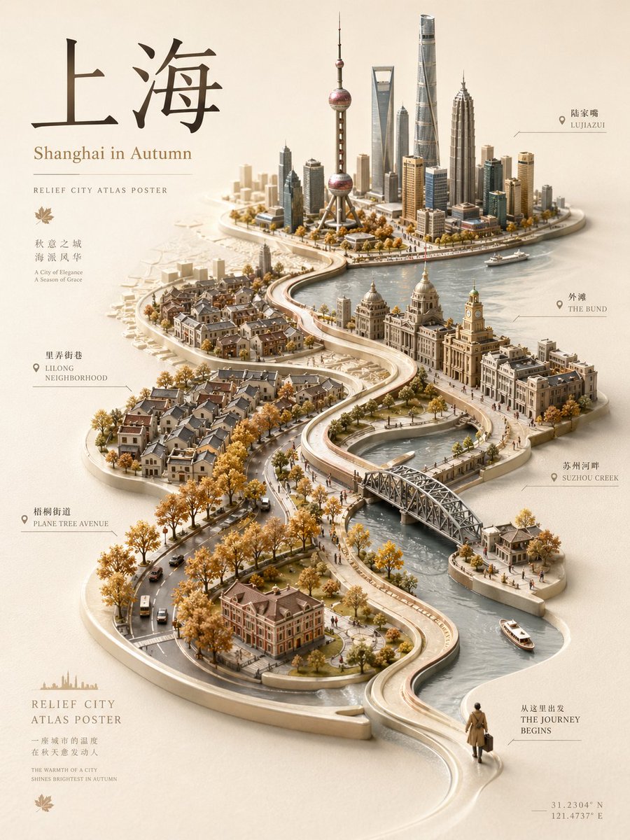 我用ChatGPT-Image-2.0结合立体浮雕与微缩模型风格,做了这组城市叙事海报《Relief City Atlas》。